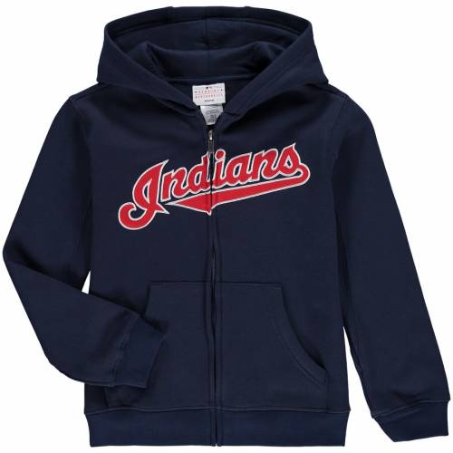 OUTERSTUFF クリーブランド インディアンズ 子供用 紺 ネイビー 【 NAVY OUTERSTUFF CLEVELAND INDIANS YOUTH WORDMARK FULLZIP HOODIE 】 キッズ ベビー マタニティ トップス