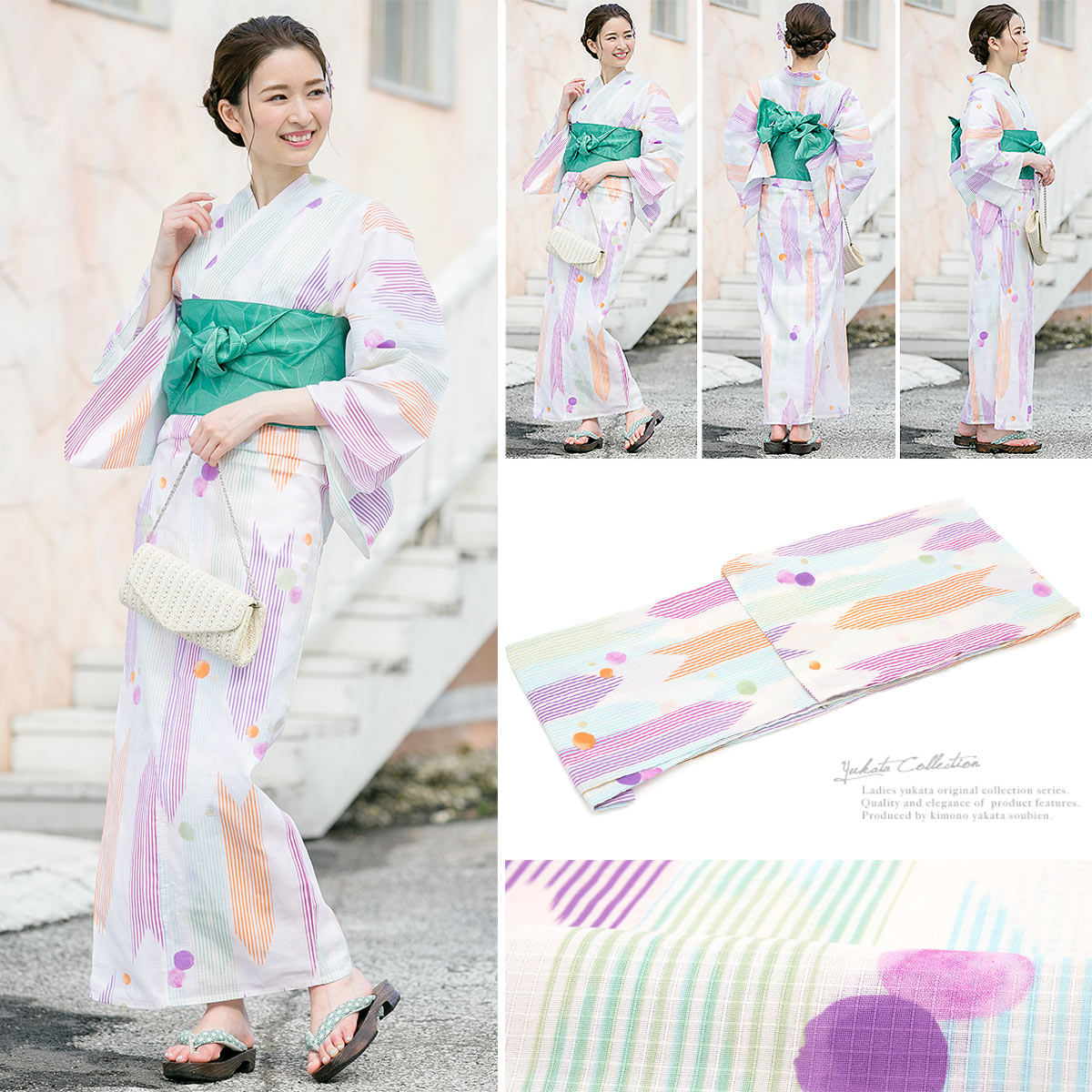 夏のお祭りや花火大会などで、女性らしく美しい着物姿をお楽しみください。