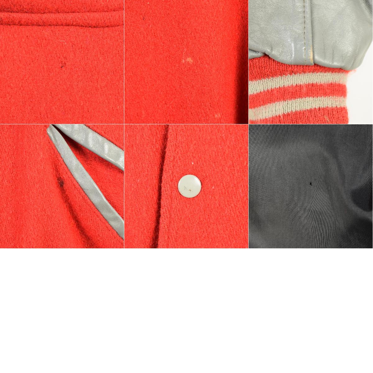 商品詳細ブランド・UNKNOWN・特徴・スナップボタン・ヴィンテージ・アメカジ・モデル/形状・袖革ウールスタジャン アワードジャケット・素材・ウール・色・レッド系 赤色・グレー系 灰色・柄・ロゴワッペン・生産国年代・70年代・サイズ・メンズL・表記サイズ:不明・着丈:64cm・身幅:62cm・裄丈:93cm・袖丈(脇下より計測):45cm・コンディション・D・カテゴリ・メンズ・ジャケット・スタジャン・アウター・商品番号・wax0552・取扱店・桃谷店・スタッフコメントUNKNOWN 袖革ウールスタジャン アワードジャケット / メンズL / 商品番号 wax0552※USEDですので使用感、前面に汚れ、ライナー、背にダメージなどございますが、まだまだご愛用していただけます。