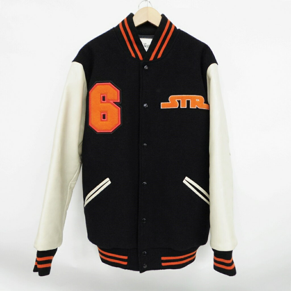 TEAM MESSAGE レタード袖革スタジャン サイズ:L カラー:ブラック×ホワイト×オレンジ【中古】【ストリート】【鈴鹿 併売品】【126-181017-02BS】