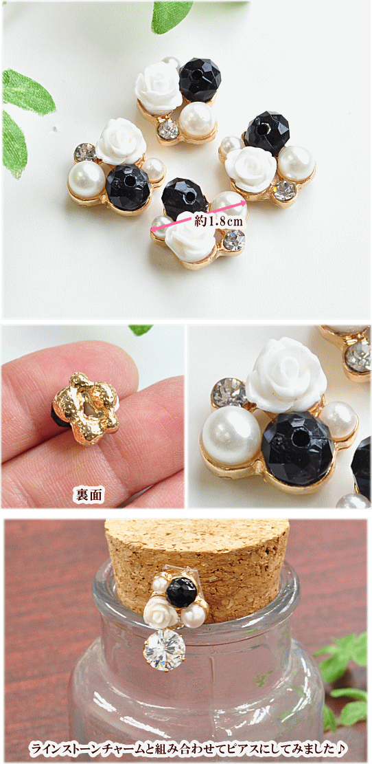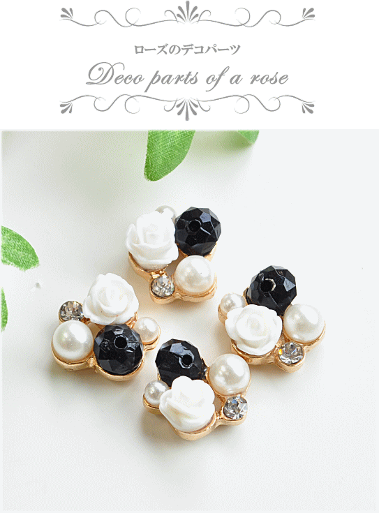 )ローズのデコパーツ 4個セットシックなモノトーンカラーのチャーム。